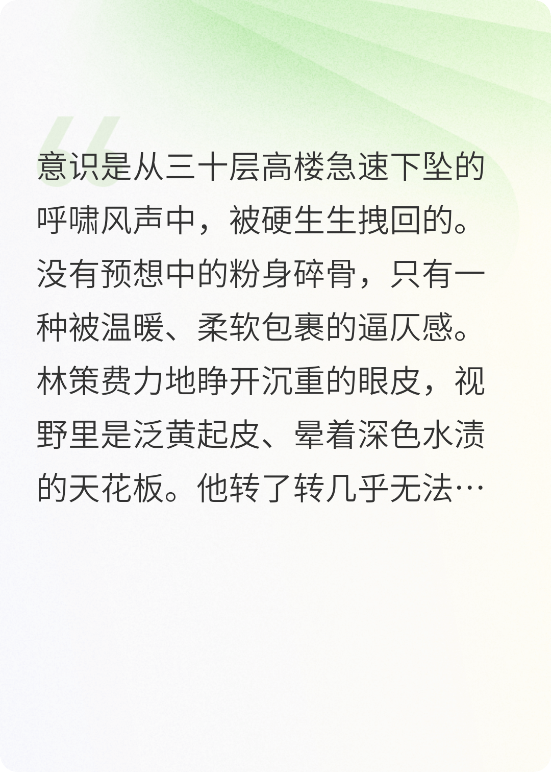 “如果我说,我能帮你呢?你信吗?”“你?”我上下打量他。瘦高的个子,白净的脸,